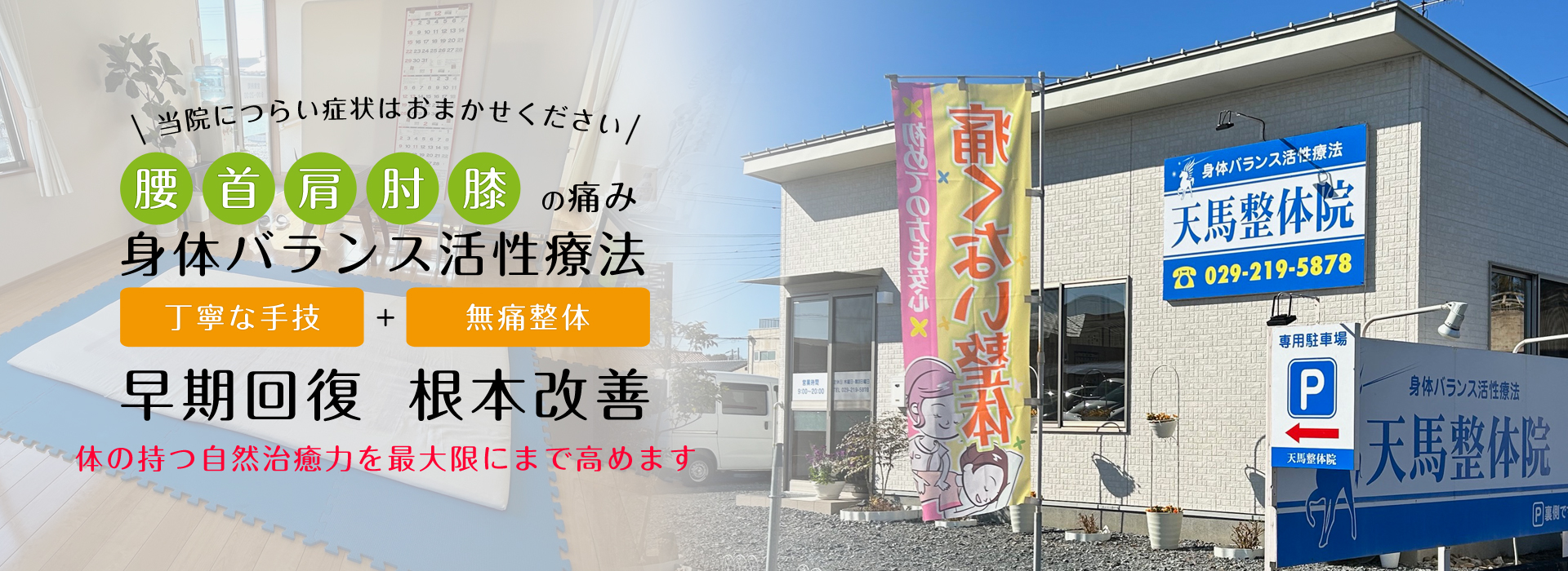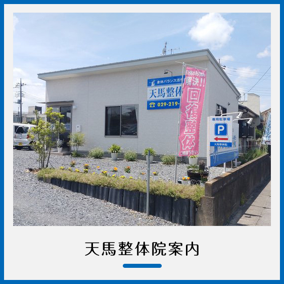 腰痛、坐骨神経痛、肩こり、関節痛でお悩みの方はひたちなか市の天馬整体院にご来院ください